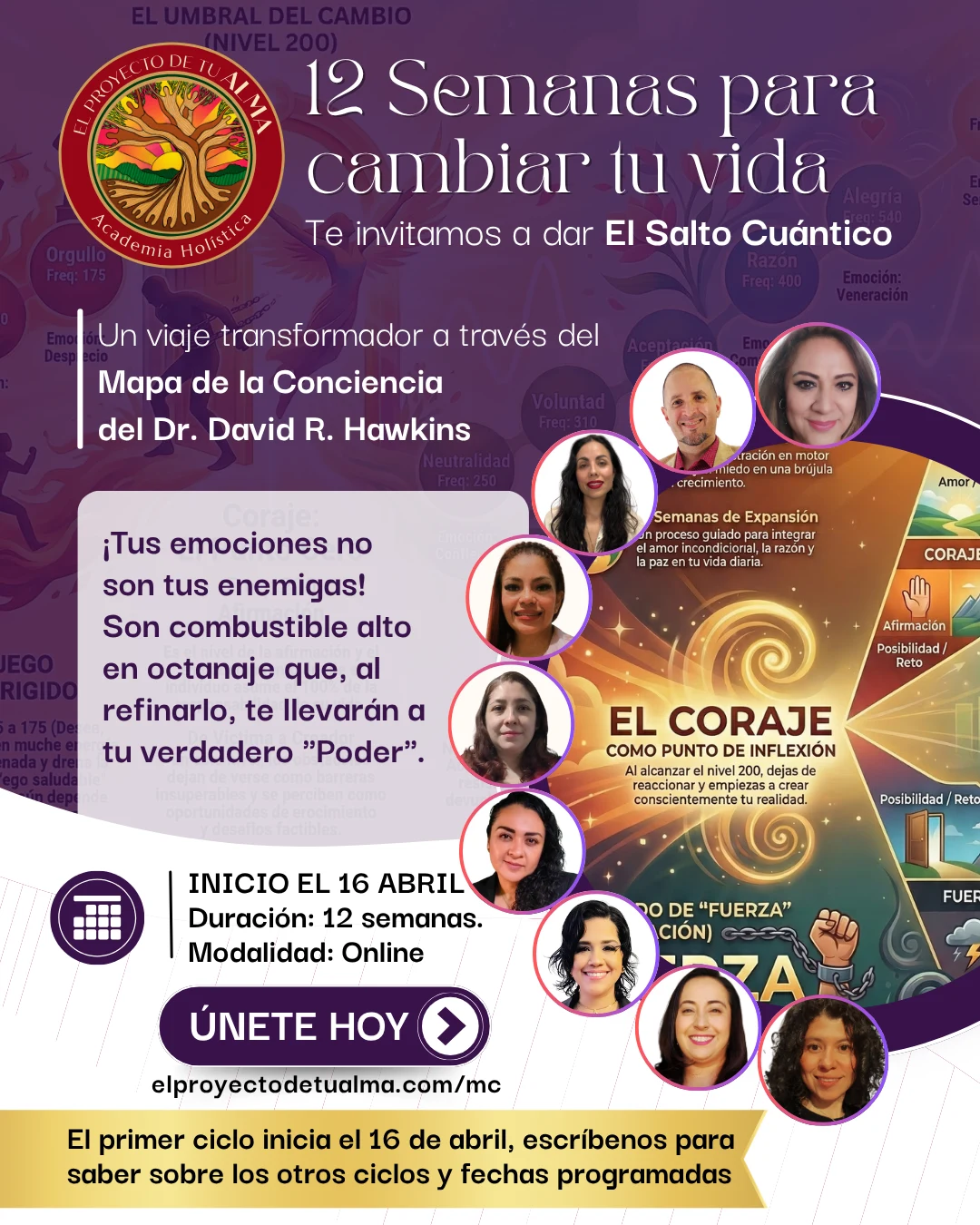 A lo largo de 12 semanas de formación profunda, te invitamos a dar El Salto Cuántico, un viaje transformador a través del Mapa de la Conciencia del Dr. David R. Hawkins.